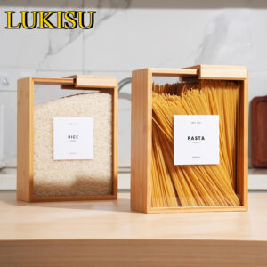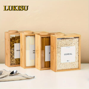 1pc LUKISU Multi functional bamboo storage box, sliding storage box, kitchen storage tool, can store grains, rice, flour, snacks, and more